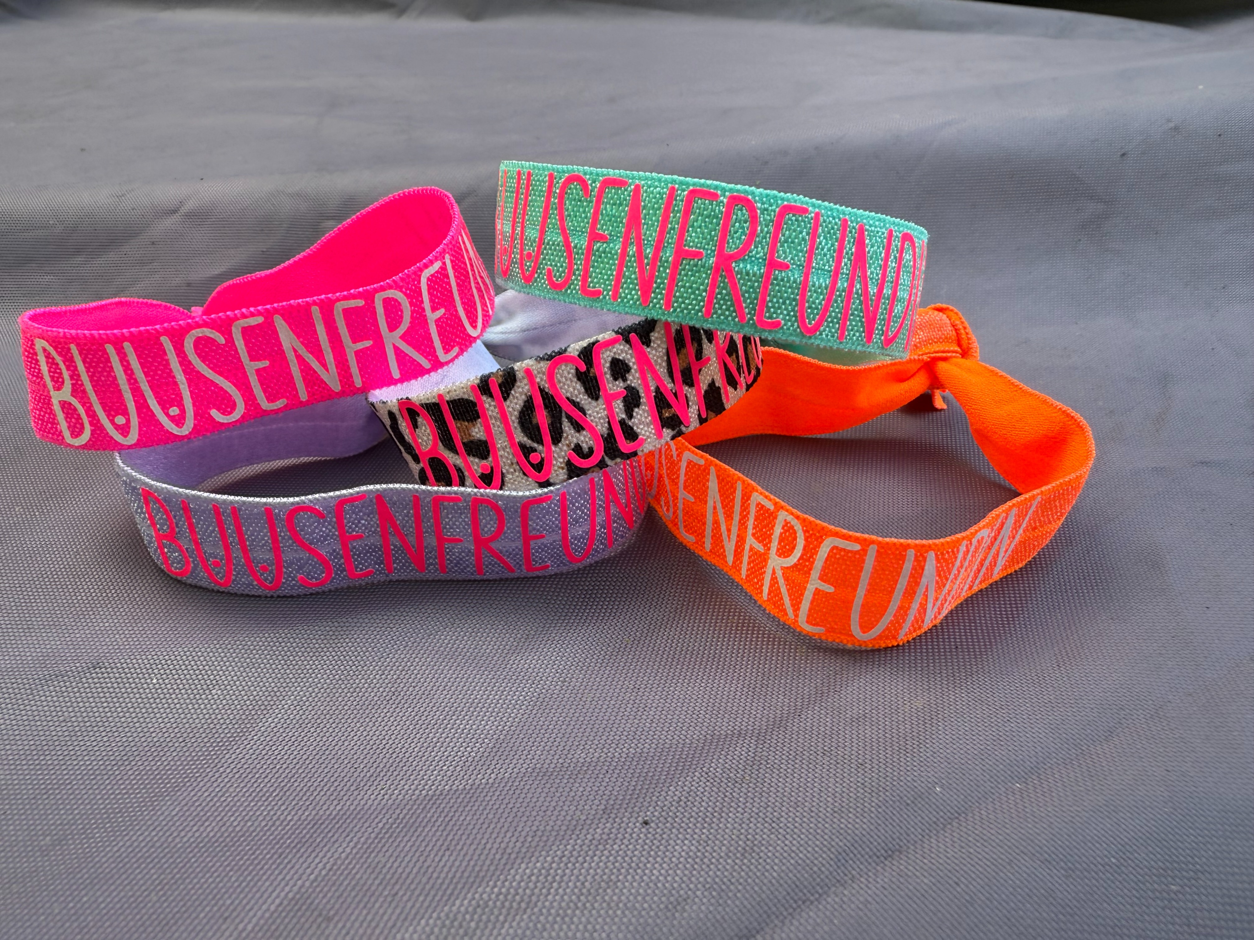 Elastisches Statement-Armband “BUUSENFREUNDINNEN”.